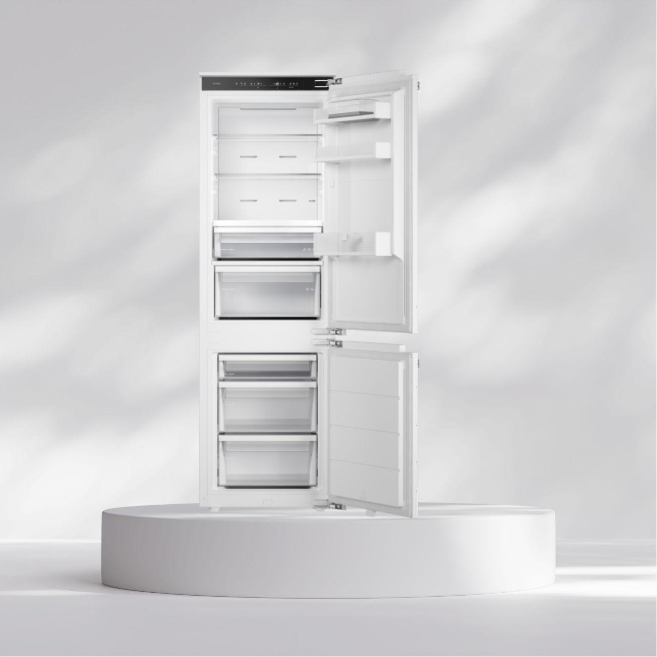Das MultiFlow 360° Belüftungssystem verteilt die kühle Luft absolut gleichmässig im gesamten Kühlraum. Das sorgt für eine optimale Luftzirkulation und beste Lagerbedingungen auf jeder Ebene. Das No-Frost-System im Gefrierteil verhindert zudem zuverlässig die Eisbildung, sodass der Energieverbrauch konstant niedrig bleibt und Sie sich das Abtauen sparen können.