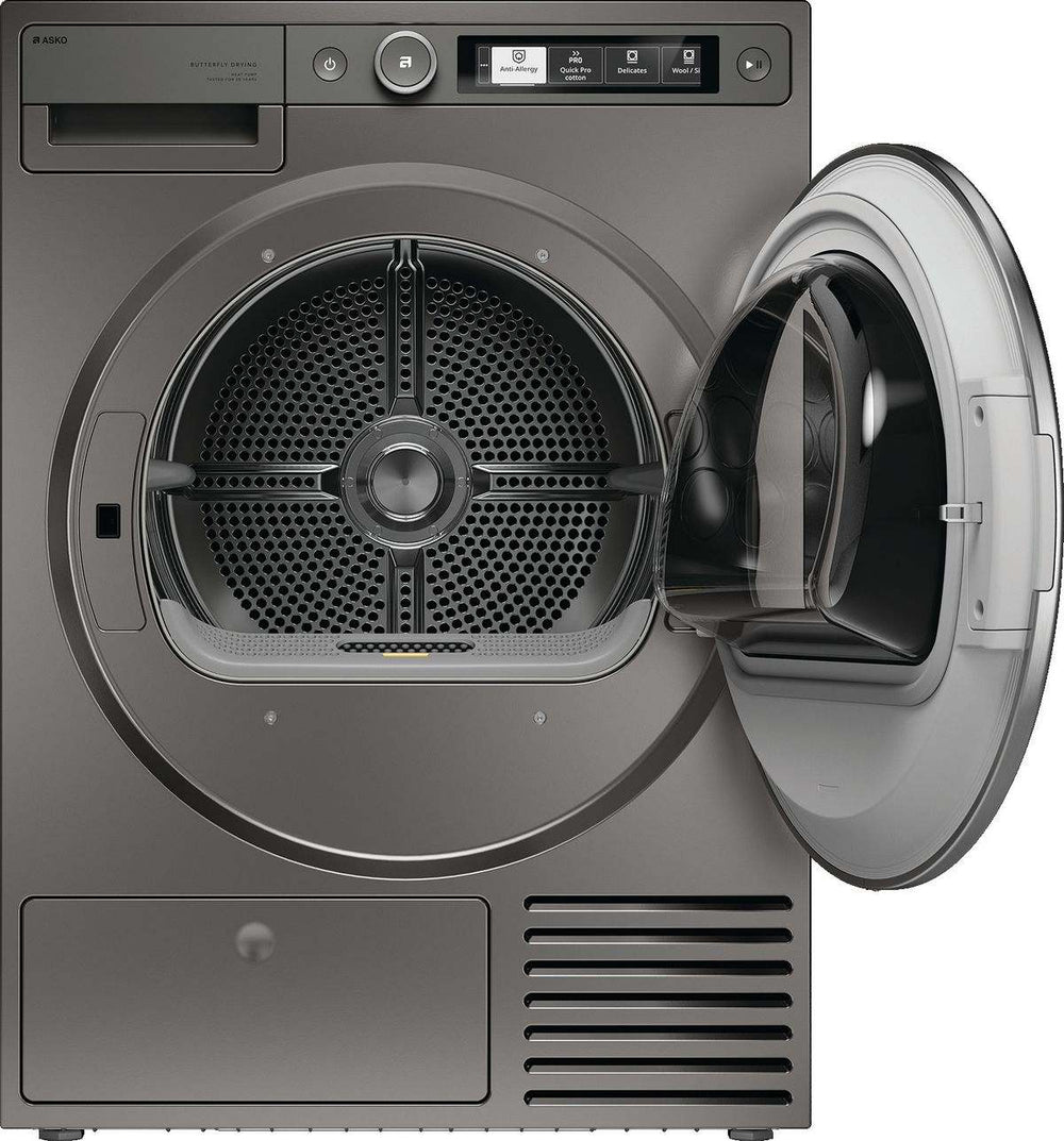 Der ASKO T 509HR T aus der exklusiven Style-Serie ist ein Premium-Wärmepumpentrockner in der eleganten Farbe Titan (Edelstahl/Titan), der modernes Design mit technischer Spitzenleistung verbindet. Mit einer Kapazität von 9 kg bietet er ausreichend Platz für grosse Wäschemengen und trocknet diese dank fortschrittlicher Wärmepumpentechnologie besonders schonend und energieeffizient. Ein herausragendes Merkmal ist der integrierte Dampferzeuger, der Kleidung in kürzester Zeit auffrischt und glättet. Die extrem leise Arbeitsweise von nur 59 dB(A) und das intuitive TFT-Farbdisplay machen die Bedienung zu einem komfortablen Erlebnis.