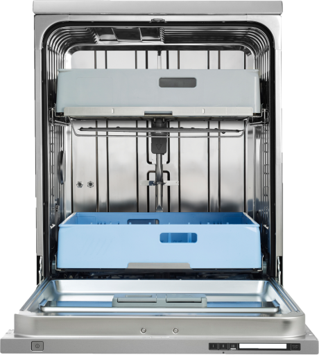 Das digitale Display ermöglicht eine einfache und präzise Steuerung der 12 Programme. Der Geschirrspüler ist mit einem Programmende-Signal ausgestattet, das sowohl optisch als auch akustisch signalisiert, wenn der Spülvorgang abgeschlossen ist.